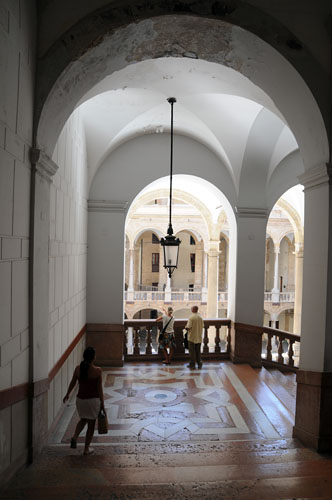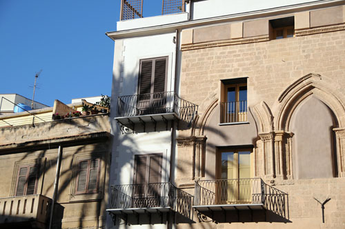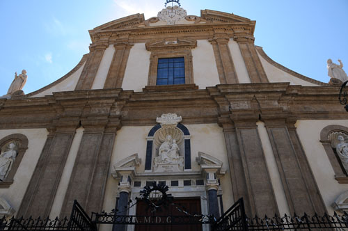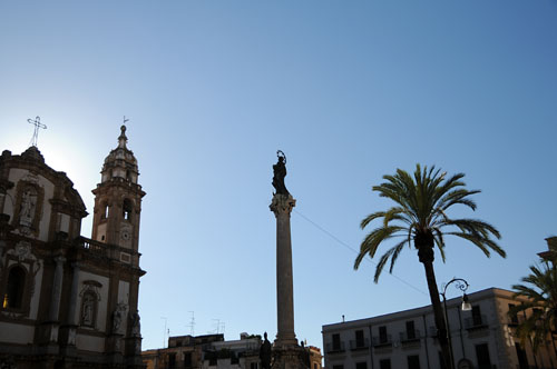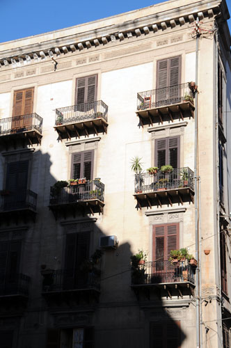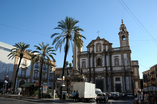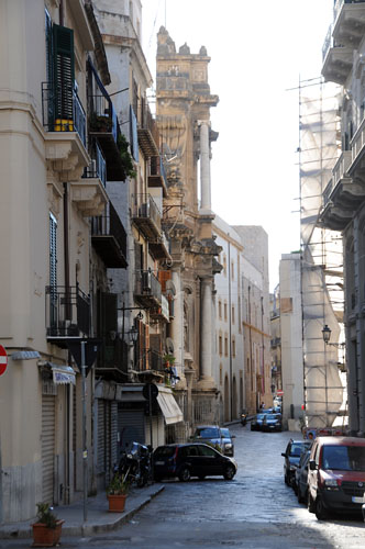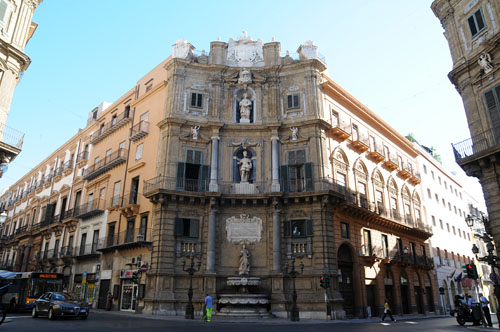 クアットロ・カンティという四つ辻に向かう。4つの建物の壁面にそれぞれ彫刻があり、ここが旧市街への観光の起点となる。