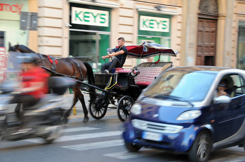メインストリートのローマ通りを駅に向かって歩き始めた。
