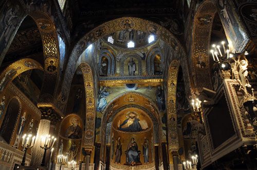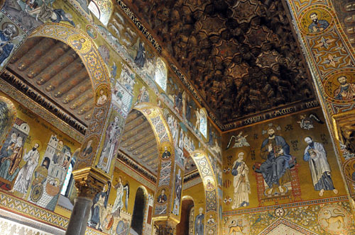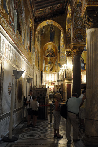 12世紀にノルマン人が築いた王宮の中の礼拝堂であり、パレルモ最大の遺産で必見、とガイドブックには書いてある。