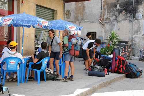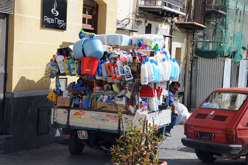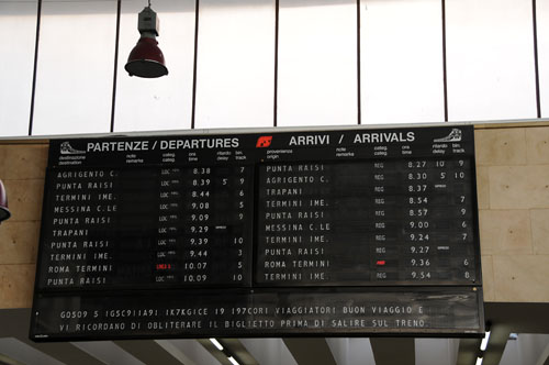 タコとレモン 今朝もガランとした食堂で一人で朝食。 ![]() ![]() ![]() ホテルから西へ100m歩くとマッシモ劇場広場にでた。 ![]() ![]() ![]() ![]() 昨日、一日歩いたので位置感覚は掴むことができて、滞在しているホテルと主要な教会や観光名所は意外に近いことがわかった。 ![]() ![]() ![]() ![]() マッシモ劇場からマクエダ通を南に向かいパレルモ中央駅に向かう。 ![]() ![]() ![]() ![]() 船で行くか、鉄道で行くか・・・どちらも12時間。 ![]() ![]() ![]() ![]() 夜行列車は20時18分発で翌朝6時30分にナポリ到着。 ![]() 切符を購入して、シチリア州立美術館へ向かった。 ![]() ![]() サン・ドメニコ教会に寄って、開店準備中の市場を抜けて、美術館へ向かったはずなのだが、ところが道を間違えてしまい、見当違いの場所をうろうろするはめになってしまった。 ![]() ![]() ![]() ![]() ![]() ![]() ![]() ![]() ![]() 聖人を描いた建物や、彫像など面白がって歩いていたが、自分がどこに迷い込んだかわからない。 ![]() ![]() ![]() ![]() ![]() ![]() ![]() ![]() ![]() へろへろになって美術館に到着。パレルモの教会や美術館など、見学できるのは、午前中は12時までが多い、そして午後は16時から。 ![]() ![]() 入場料を払って入ると中庭があり、美術品が無造作に展示してある。 ![]() 空調はなくオープンエア、光も差し込んでくる。 ![]() ![]() 撮影もストロボを光らせなければ自由である。 ![]() 2階にはこの美術館のメインの一つであるメッシーナの「受胎告知のマリア」がある。 ![]() これ以外にも14〜17世紀の美術品を中心に展示してある。 ![]() ![]() ![]() ![]() ![]() 1時間程かけて、ゆっくり見たが、まだ昼前である。 ![]() ![]() ![]() ![]() ![]() ![]() ![]() 先ほど準備中だったサン・ドメニコ教会の近くの市場は、地元の買い物客と観光客で賑やかである。 ![]() ![]() ![]() ![]() 欧米人の若者グループはおそるおそる食べていた。 ![]() 「ニッポンジン、タコ、オイシイヨ」と声をかけられた。 ![]() 食べ終わって10ユーロ札で支払ったら、ジャリ銭をバラバラとよこした。 ![]() ![]() ![]() ![]() ![]() ![]() ![]() ![]() ![]() 蛸だけの昼ゴハンでは足らないので、昨晩行った店でスパゲティ・ポモドーロを。 ![]() 外さない美味しさとでもいったらいいのかな。 引ったくりにご用心 へ 表紙へ 海外旅行目次へ |