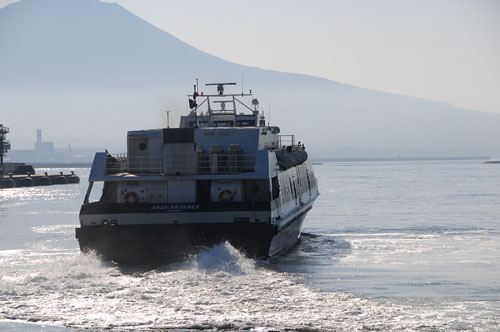 帰りの船は、水中翼船なのでデッキは無し。