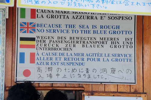 「高潮のために青の洞窟への入場中止になりました。」