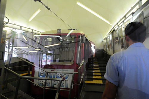 港から島の中心部ウンベルト1世広場までは、標高差があるため徒歩では無理なので、フニクラーレ(ケーブルカー)で行くことにした。