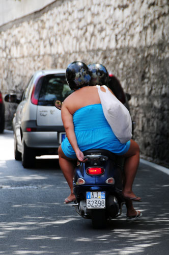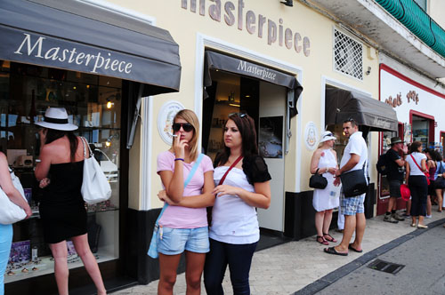 海を見下ろしながら、1本道を西へ歩いて行く、多くの土産物屋が並んでいる風景はアマルフィや京都の清水坂と同じである。