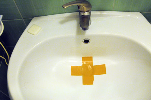 このホテル、洗面台の栓が無い。