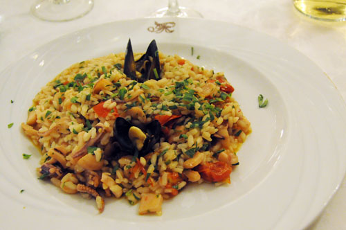 注文は、蛸のトマトソース煮と海鮮リゾットとハウスワインの白。