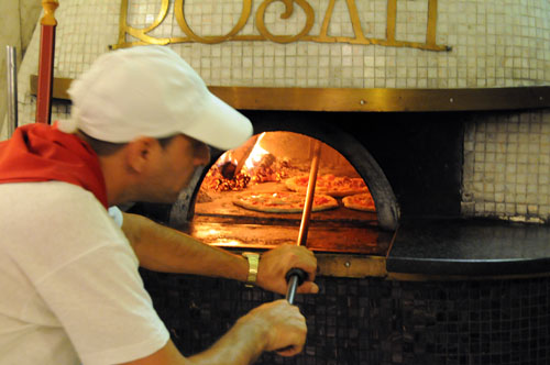 サン・カルロ劇場の近くのROSATIというピッツア屋には行列ができている、看板を見てみると2階で食事ができるようだ。