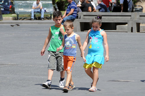 スパッカ・ナポリを通ってダンテ広場まで歩いている時、正面から来る親子、「良いなぁ。」とカメラを向けたところ、私に気がつき笑ってくれた。