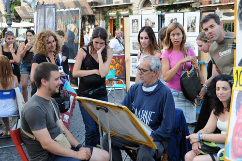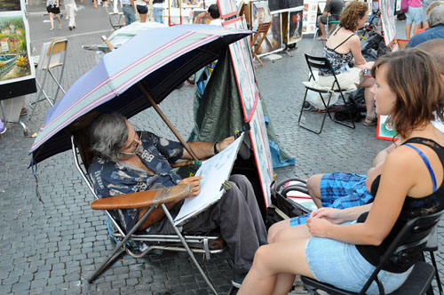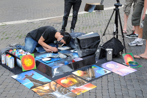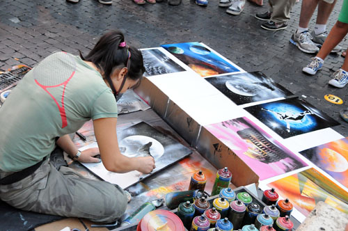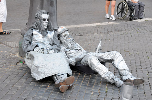 予想通り、大道芸や似顔絵書きなどのパフォーマンスで賑わっている。