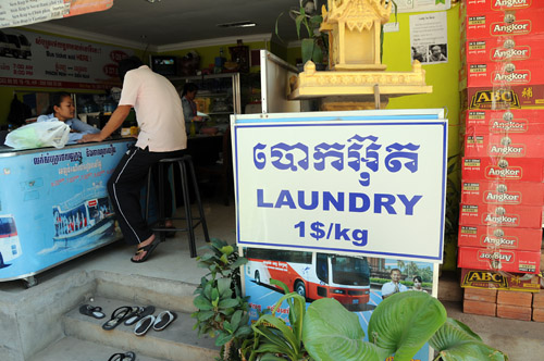 ホテルを出て、まず溜まった洗濯物を出しにいく。