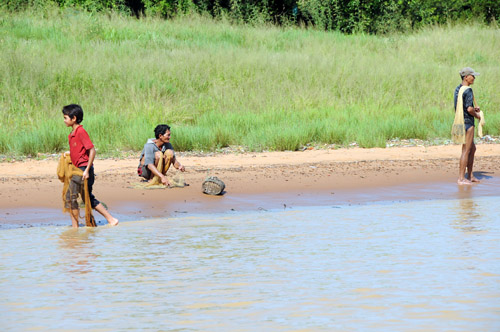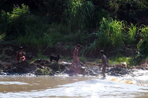 泥のような川を下ること約30分、視界が広がり湖の集落に到着。