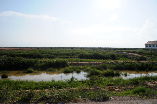 開けた道を走っているとリーさんが「ここは雨期になると湖になります。」と教えてくれた。