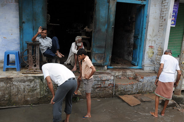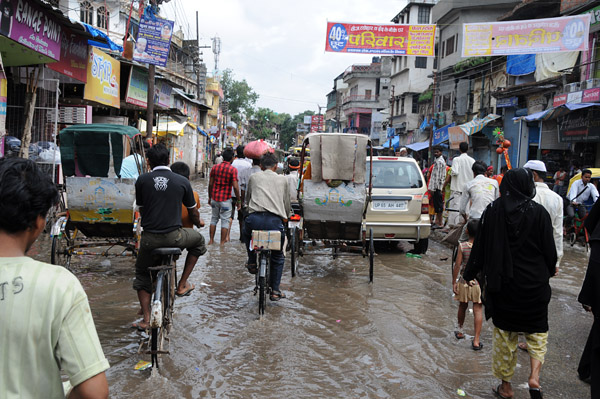 ガンガーまでの道路はまだ冠水している。