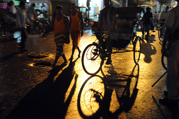 いったんホテルに戻ることにしてリキシャと交渉したら、案の定、「川状の道路を走るのはたいへんなので50ルピーでないと行かない。」と言われてしまった。