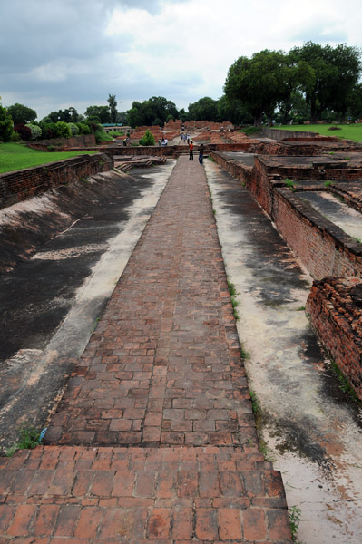 公園に入ると仏跡が広がり奧にはダメーク・ストゥーパが見えている。