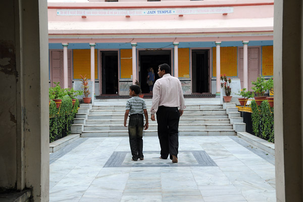 入り口にはマハーヴィーラの像があり、下足番の爺さんに10ルピーでサンダルを預かってもらい堂内へ。