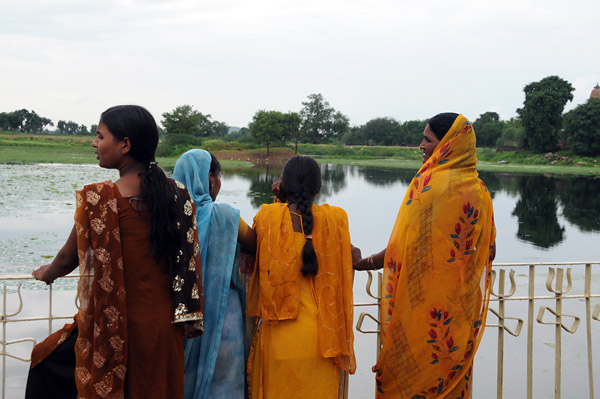 寺院の手前にある沐浴池に多くの人が集まっている。