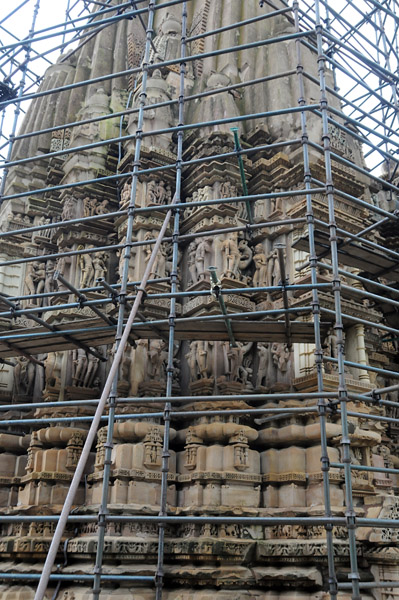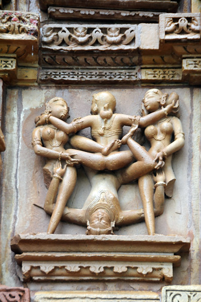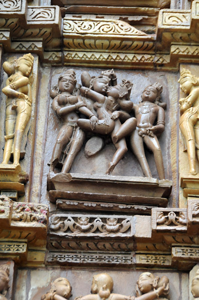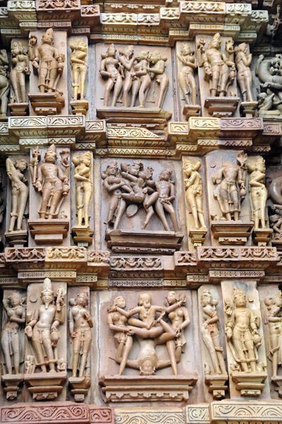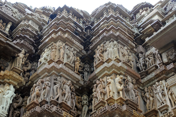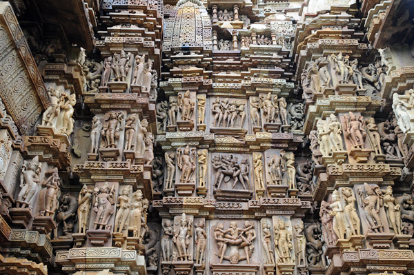 ここはシヴァ神を祭る寺院で、外壁にはミトゥナ像(抱擁する男女)、アプサラス像(天女)などの彫刻で埋め尽くされている。