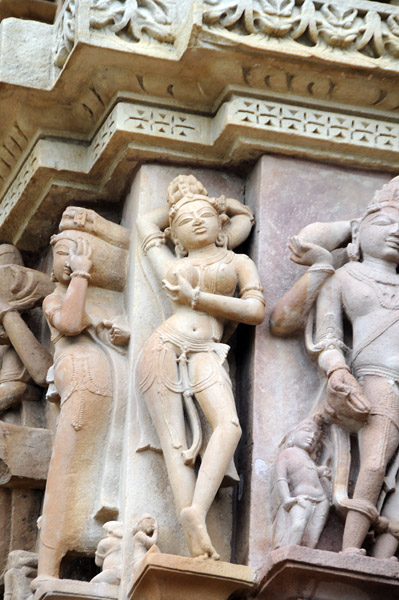 ミトゥナ像は有名だが、アプサラス像もそれにまけないほど官能的で美しい彫刻である。