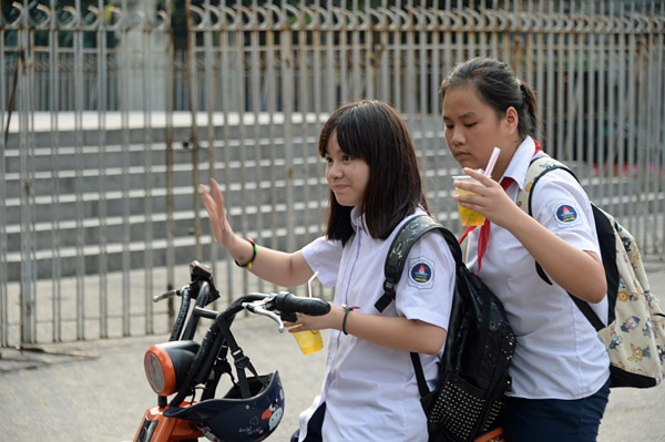 外に出ると教会の隣の学校が終業時刻。