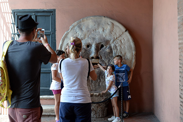 「真実の口」、一説によると古代のマンホールの蓋だったという。