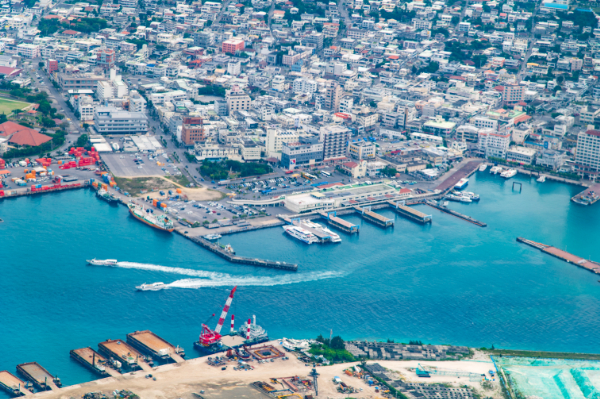 見慣れた離島ターミナルも空から見ると新鮮である。
