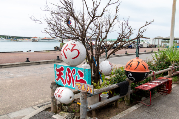 商店街に行き、沖縄そばのカップ麺(非常食兼お土産)、さんぴん茶のティーバッグ、サーターアンダギーの粉を購入し港に戻る。