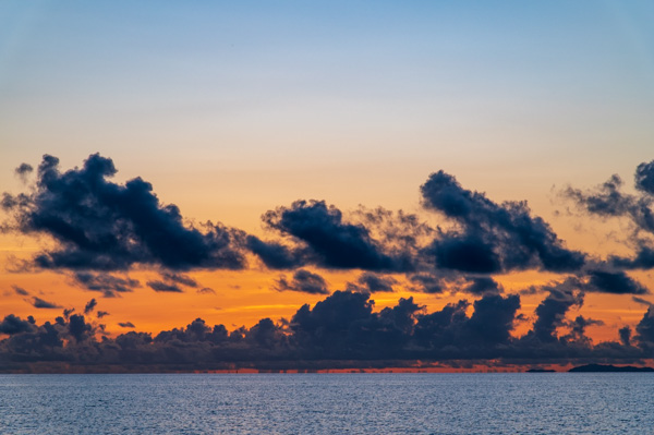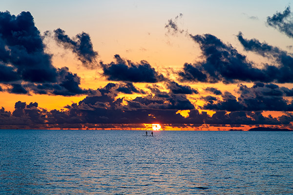 SUP(スタンドアップパドルボード)の2人が良い感じでシルエットになっている。