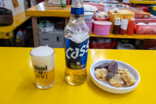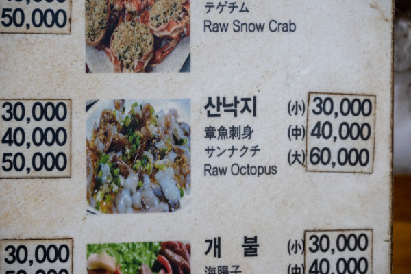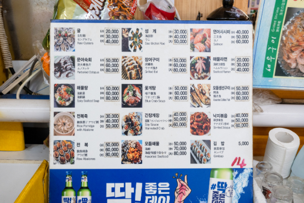 ビールとナクチを注文するとオモニが料金表を見せて「これで間違いないか?」と指差してきた。