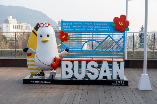 4年前まで「I・LOVE(ハートマーク)・BUSAN」のモニュメントがキャラクター入りに変わっている。
