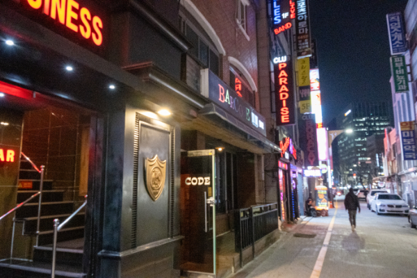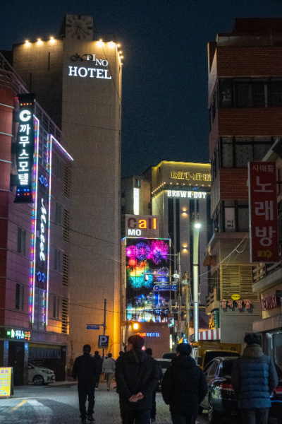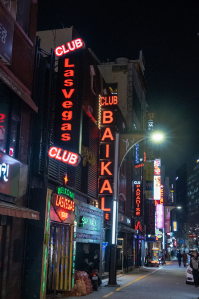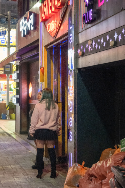 店を出てホテルに戻る時、風俗街を抜けて行く、「BAIKAL」などロシア人の風俗店が数軒ある。
