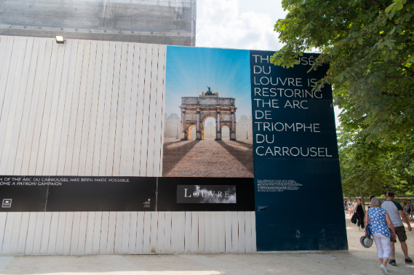何の看板かと思えば、ルーヴル美術館とチュイルリー公園との間に新たに凱旋門を作る案内である。