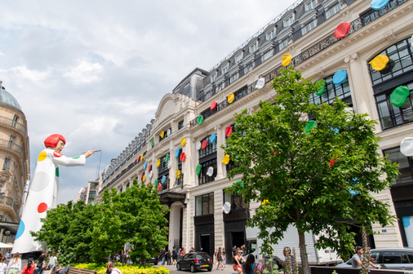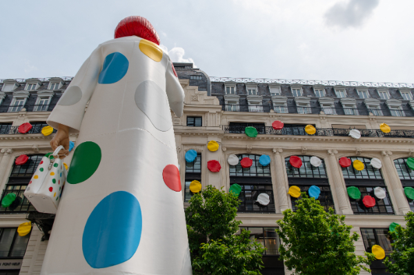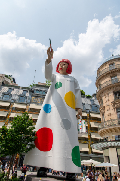 そういえば春先、ルイ・ヴィトン本社のビルの屋上からのぞき込む草間彌生氏の巨大人形の写真が流れていた。