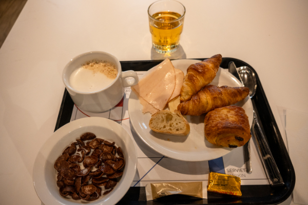フランス伝統のクロワッサンとカフェオレではなく簡易ブッフェスタイル。