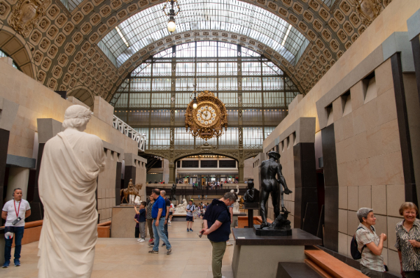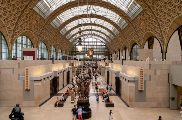 オルセー美術館は外観はアールヌーヴォーのデザインを取り入れているが館内は元は駅だったためドーム屋根と直線で構成されている。