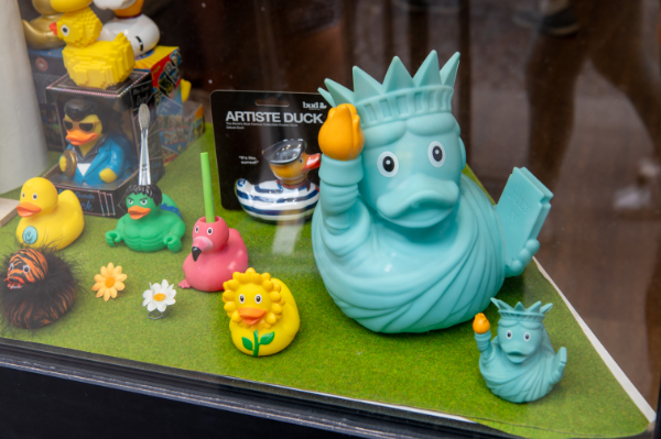 ただアヒルの雑貨を売ってるだけなのに狭い店内は大賑わいである。