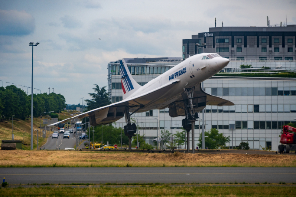 13時20分ゲートを離れ滑走路を走行していると左手にコンコルドが今にも飛び立ちそうな形で保存されている。