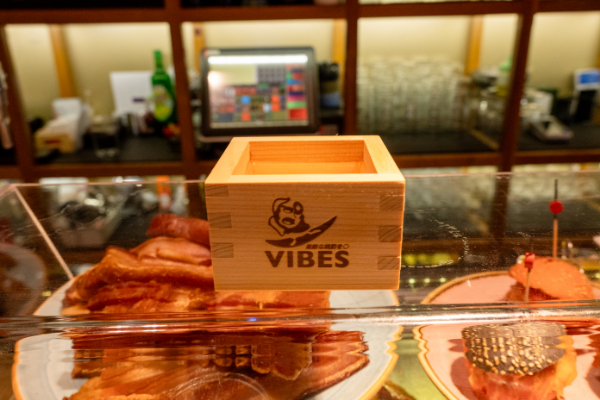 この升は京都の知人夫妻の店「樽酒と蕎麦VIBES」で日本酒を提供するとき使われている升で一定量呑むといただけるものである。