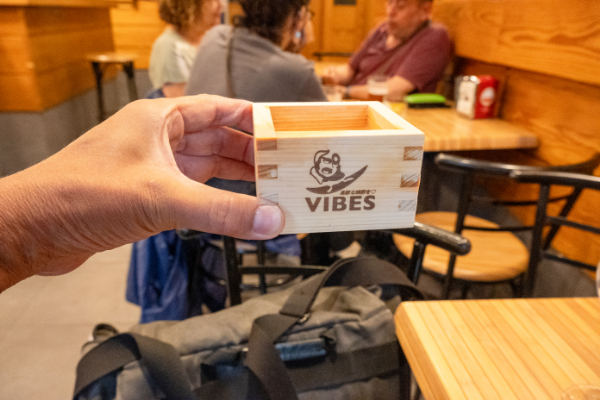 「Woodcup for Japanese Rice Wine(sake)」と言って店主に渡した。