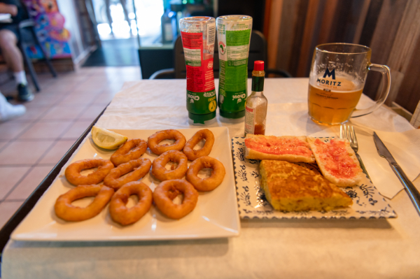 イカリングフライとトルティーヤ、ビール。