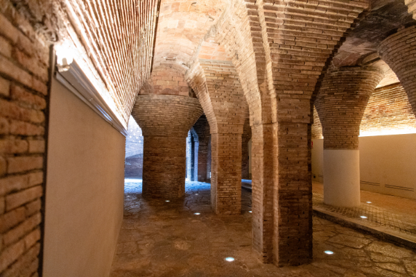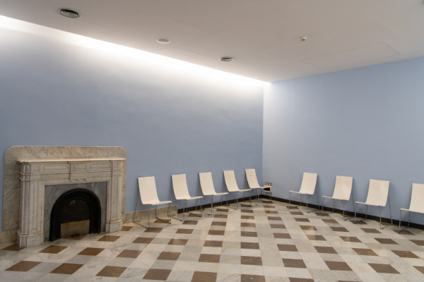 曲線のベンチがある広場はルートの最後になる。