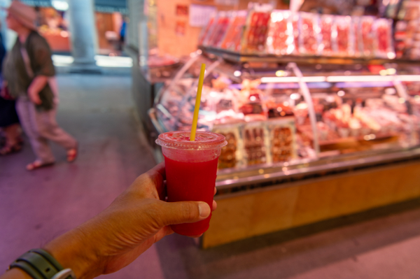 一通り歩き、果物屋でスイカジュースを一杯。
