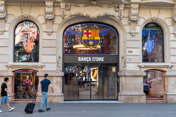 途中、F.Cバルセロナのグッズショップがある。