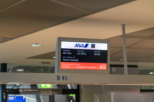 走ってターミナル2へ走り出国審査を抜けてANAの出発ゲートに着いたのが搭乗開始直前の30分前。