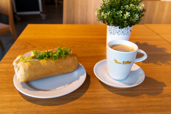 サンドウィッチとコーヒーで6ユーロ。