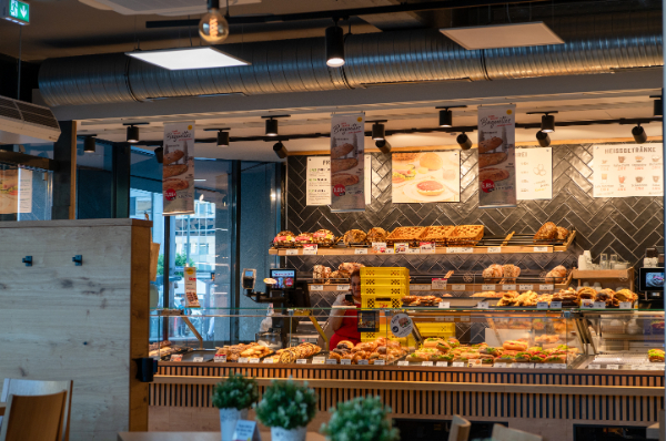 ホテルに戻る途中、カフェ併設のパン屋で朝食。