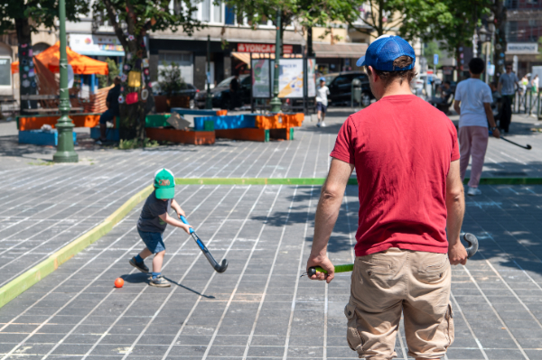 近くの広場では地元の人たちが思い思いの時間を過ごしている。
