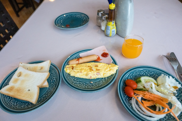 料理の数も最低限、ただ、オムレツはその場で焼いてくれる。