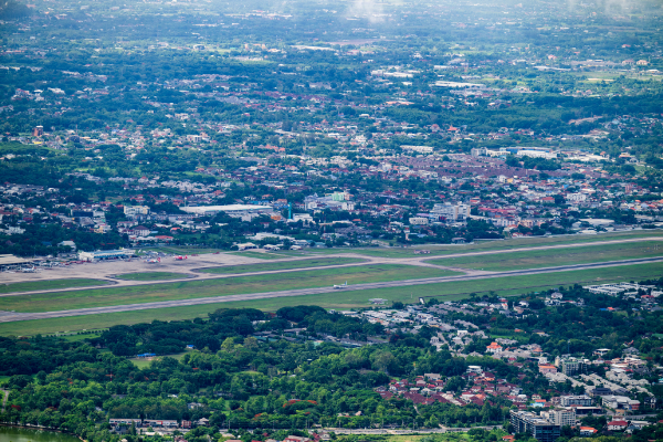 正面に空港が見える。