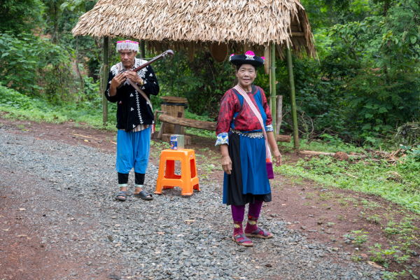入り口ではモン族の夫婦が迎えてくれる。